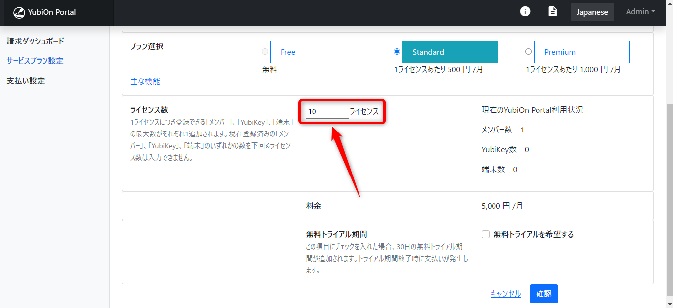 有料プランをご購入の際は、利用する数だけのライセンス数をお買い求めください。