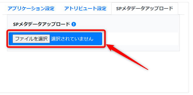 App設定画面の情報設定部分の「SPメタデータアップロード」をクリックします。