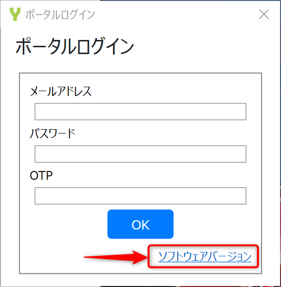 設定ツールを起動し、「ソフトウェアバージョン」をクリックします。